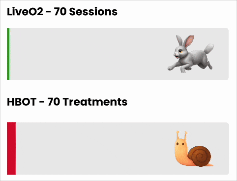 LiveO2 training sessions and systems are significantly less expensive than a hyperbaric chamber, saving 380%+ compared to HBOT sessions.